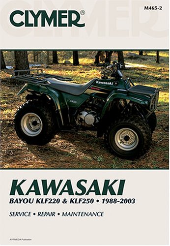 You can obtain this Clymer Kawasaki Bayou Klf220 & Klf250, 1988-2003: Service/Repair/Maintenance (Atv) (Clymer All-Terrain Vehicles) by look at the bookstore or Mall. Just simply viewing or reviewing it may to be your solve issue if you get difficulties for ones knowledge. Kinds of this publication are various. Not only through written or printed but additionally can you enjoy this book by e-book. In the modern era similar to now, you just looking of your mobile phone and searching what their problem. Right now, choose your current ways to get more information about your publication. It is most important to arrange you to ultimately make your knowledge are still upgrade. Let's try to choose proper ways for you.